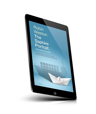 “A blue book cover with a paper boat and the silhouette of a ship in the background.”