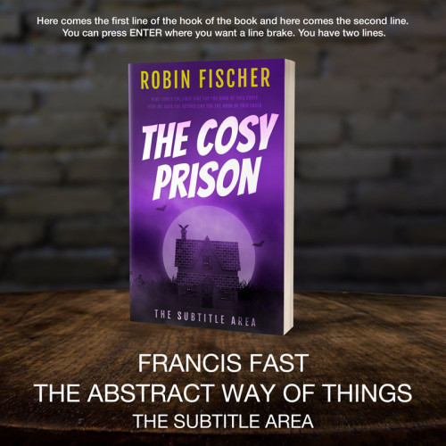 This book cover has 2 lines for the title, 1 line for the subtitle, 1 line for the author, 2 lines for the hook.