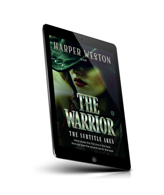 “A woman in a cowboy hat partially covering her face is featured on a dramatic book cover. The title reads "The Warrior."”