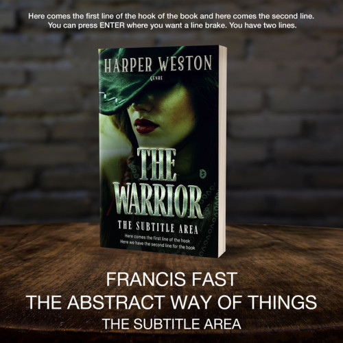 This book cover has 2 lines for the title, 1 line for the subtitle, 1 line for the author, 2 lines for the hook, and finally 1 line for the genre.