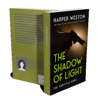 “Silhouette of a hand holding a gun against a smoky, backlit background. Bold green text overlaid.”