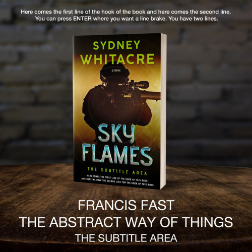 This book cover has 2 lines for the title, 1 line for the subtitle, 2 lines for the author, 2 lines for the hook, and finally 1 line for the genre.