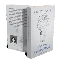 “The image shows a book cover with illustrations of business concepts inside a lightbulb shape. The title is "The New Business Model."”