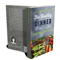 “Colorful vegetables including asparagus, carrots, and tomatoes arranged around a copy of a book titled "The Healthy Dinner."”
