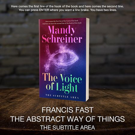 This book cover has 2 lines for the title, 1 line for the subtitle, 2 lines for the author, 2 lines for the hook, and finally 1 line for the genre.