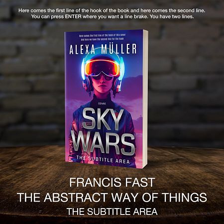 This book cover has 2 lines for the title, 1 line for the subtitle, 1 line for the author, 2 lines for the hook, and finally 1 line for the genre.