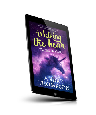 “A cosmic-themed book cover with a unicorn silhouette, stars, and swirling purple and pink nebulae.”