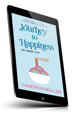 “A light blue book cover featuring colorful rainbow circles in a bowl and the title "Journey to Happiness".”