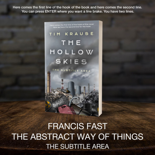 This book cover has 3 lines for the title, 1 line for the subtitle, 1 line for the author, 2 lines for the hook, and finally 1 line for the genre.