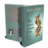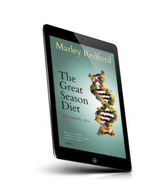 “A book cover featuring a DNA strand made of various fruits and vegetables on a green background.”
