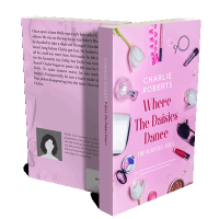 “Pink-themed flatlay with makeup, sunglasses, flowers, and a book title.”