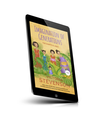 “A colorful illustrated book cover featuring a family in vibrant attire amid lush greenery and abstract shapes.”
