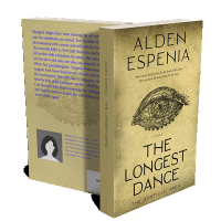 “Vintage-style book cover with an intricate eye illustration, featuring the title "The Longest Dance" and author name at the top.”