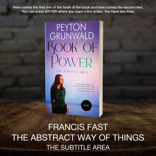 This book cover has 2 lines for the title, 1 line for the subtitle, 2 lines for the author, 4 lines for the hook, and finally 1 line for the genre.