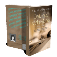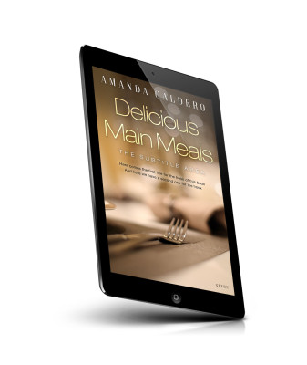 “A close-up of a dining table with cutlery, set against a blurred background, featuring a book title about meals.”