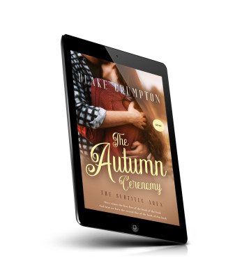 “A couple lovingly embraces outdoors, with fall colors in the background.”
