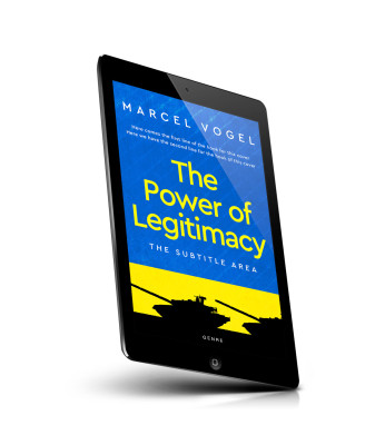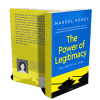 “A blue book cover with the title "The Power of Legitimacy," yellow text, and silhouettes of tanks on the bottom.”