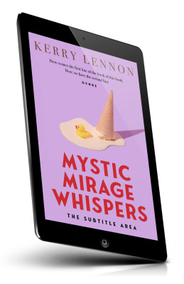 “An ice cream cone with a rubber duck is melting on a purple surface. Book title: Mystic Mirage Whispers.”