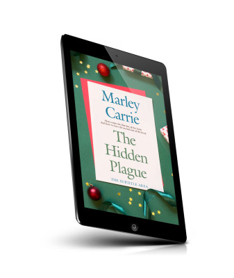 “A book cover design on a festive green background with red ornaments and ribbons.”