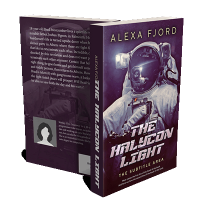 “An astronaut in space with a glowing light on their suit, set against a dark, starry backdrop. The title and author's name are in bold text.”
