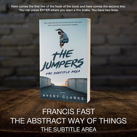 This book cover has 2 lines for the title, 1 line for the subtitle, 1 line for the author, 2 lines for the hook, and finally 1 line for the genre.