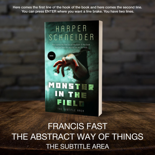 This book cover has 3 lines for the title, 1 line for the subtitle, 2 lines for the author, 2 lines for the hook, and finally 1 line for the genre.