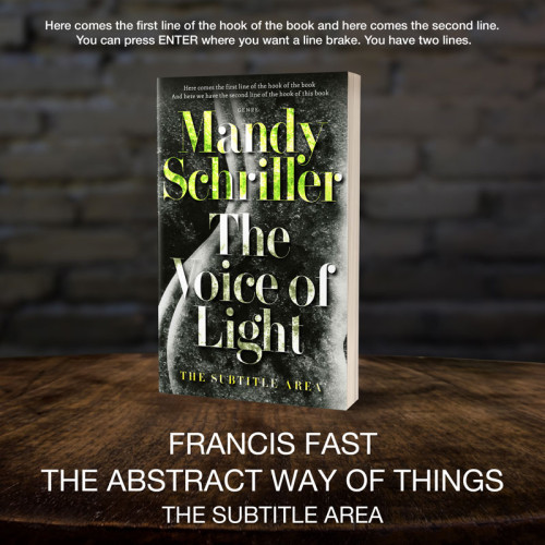 This book cover has 3 lines for the title, 1 line for the subtitle, 2 lines for the author, 2 lines for the hook, and finally 1 line for the genre.