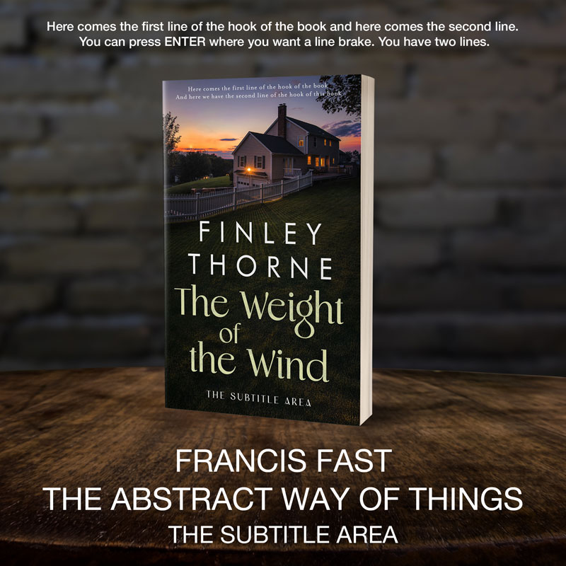 This book cover has 3 lines for the title, 1 line for the subtitle, 2 lines for the author, 2 lines for the hook.