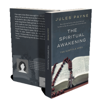 “An open book with a rosary and cross draped over it, against a dark background.”
