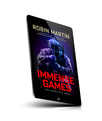 “A soldier in tactical gear holding a rifle, with dramatic red and blue lighting effects around him. "IMMENSE GAMES" in bold red text at the bottom.”