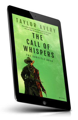 “A person in a rugged outfit and hat, holding a rifle and revolver, stands against a green misty background.”