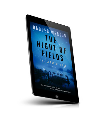 “A dark, atmospheric cover featuring a blue, cracked surface with a pier on a misty waterfront.”