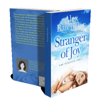 “A book cover featuring a woman lying down and smiling with a blue sky background. Title: "Stranger of Joy".”