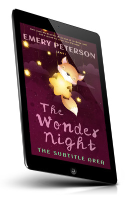 “A cute fox holding a glowing star floats against a starry, purple night sky.”