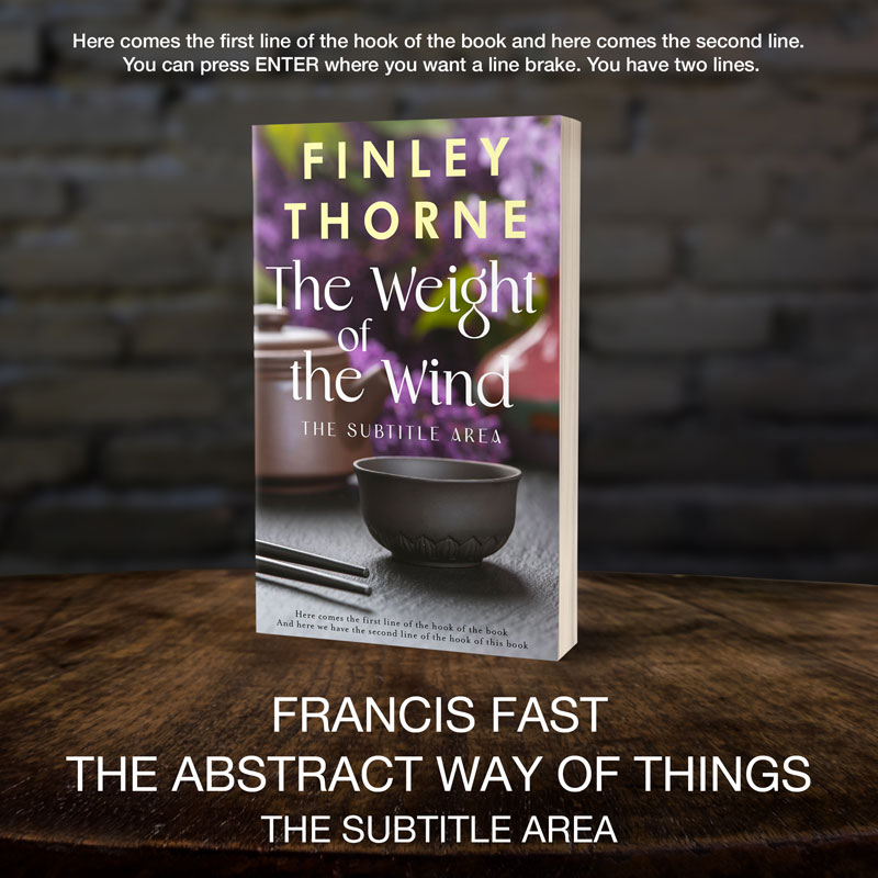 This book cover has 3 lines for the title, 2 lines for the author, 2 lines for the hook.
