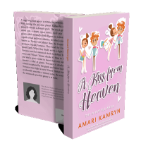 “Four illustrated girls with hearts on a pink background, featuring the title "A Kiss from Heaven" and author's name, Amari Kamryn.”