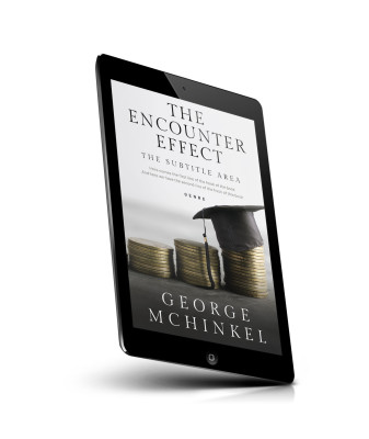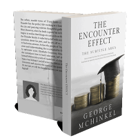 “A stack of coins and a graduation cap with a blurred background and a book cover title above.”