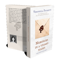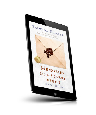 “An envelope with a wax seal is centered on a textured background, with elegant text and a genre label.”