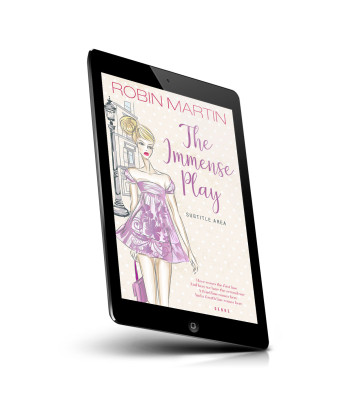 “A stylish woman in a pink dress stands against a city backdrop in this illustrated book cover.”