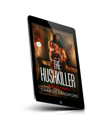 “A horror book cover featuring a bloodied figure standing in a dark, grimy environment.”