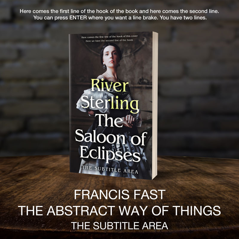 This book cover has 3 lines for the title, 1 line for the subtitle, 2 lines for the author, 2 lines for the hook.