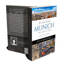 “A book cover of "Beautiful Munich" featuring cityscape views of Munich, with notable architecture and vibrant rooftops.”