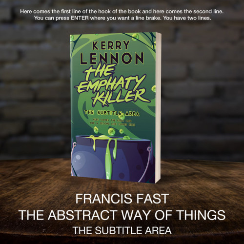 This book cover has 3 lines for the title, 1 line for the subtitle, 2 lines for the author, 2 lines for the hook.