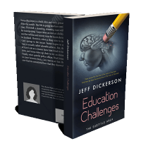 “A pencil erasing part of a human brain in profile, symbolizing education challenges. The background is dark and somber.”