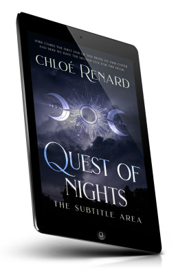 “Dark, mystical cover with a celestial design and moons on a starry sky background.”