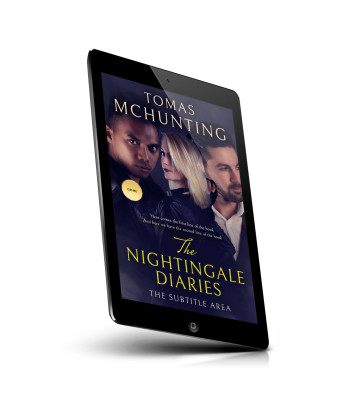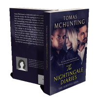 “Three individuals, two men and one woman, with serious expressions against a dark background. The title "The Nightingale Diaries" is at the bottom.”