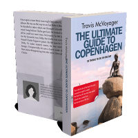 “A guidebook titled "The Ultimate Guide to Copenhagen" features a photo of the Little Mermaid statue by the water.”