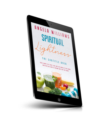 “A book cover with smoothies, fruits, dumbbells, and a white background.”
