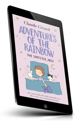 “A child reads in bed, surrounded by a bunny and a cat, under a starry sky with a pastel purple background.”