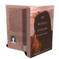 “Silhouette of a woman in a field against a sunset, featuring a book cover design.”